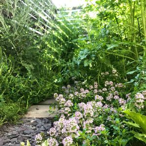 先程picの裏側𓈒𓂂𓏸 木塀の隙間から差し込む光がお気に入りの場所𓂃𖤥𖥧𖥣⋆* シャーロット様は右側に地植えしてますˊᵕˋ よーく見たらオレンジ色の蕾みえるかな?♡⁼³₌₃ 手前に広がるピンク絨毯はタイムさん...♪*゚ 冬のグリーンも綺麗でしたが春のお花もステキだわ(❁ᴗ͈ˬᴗ͈)