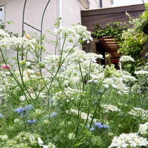 オルレアとニゲラ*⑅୨୧ これからまだまだ沢山咲くのに⋆̩☂︎*̣̩だなんて𓈒𓂂𓏸 - - - - - - - - -▷◁.。 奥に見える作業スペースꔛ お家の東側は奥まで広めの物置となってますˊᵕˋ 梅雨になったらココと屋根付きパーゴラ下でゴソゴソしますꔛ