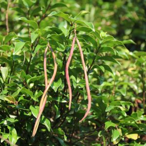 🌱 テイカカズラ(定家葛)🌱 キョウチクトウ科 テイカカズラ属 ➊❷❸とても大きなセンダンの木にテイカカズラが絡まっていました。 キョウチクトウを小さくしたような白花で咲き進むとクリーム色に変化します。 甘い香りが漂っていました。 ❹センダンの花はまだツボミでした。 昨年の実が残っていました。 ➎昨年のセンダンの花 若葉の葉の脇から柄を伸ばし多数の薄紫色の小さな花が円錐状に咲きます。 古い呼び方楝(アワチ、オウチ) ➎以外は2024年4月28日撮影です。 🏷つる巻き月曜日