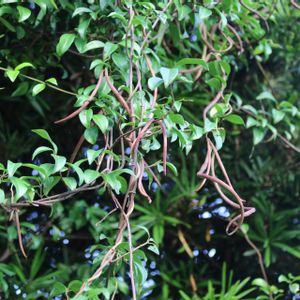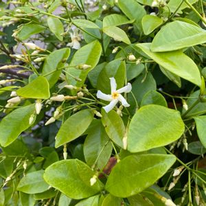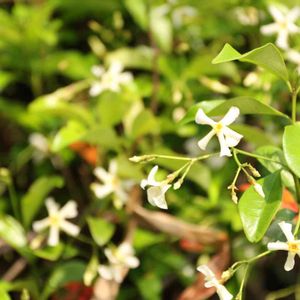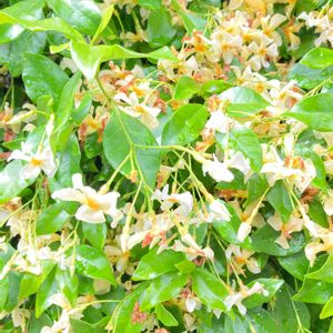 石垣に張り付いた テイカカズラの葉が 赤く 紅葉🍁して とても綺麗でした。 調べました。 植物名 テイカカズラ(定家葛) 学名 Trachelospermum asiaticum 英名 Asiatic jasmine,Japanese star jasmine 和名 定家葛 科名 キョウチクトウ科 属名 テイカカズラ属 原産地 日本 テイカカズラ(定家葛)の特徴 テイカカズラは、日本原産のつる性常緑低木です。テイカカズラの名前は、能楽「定家」が由来とされています。式子内親王と藤原定家の悲恋の物語です。式子内親王へ恋焦がれた藤原定家は彼女の死後、テイカカズラとなってその墓にまとわりつき墓石を覆ってしまったと言われています。 テイカカズラは初夏、5~6月頃、直径2cm程度の芳香のある花をたわわに咲かせます。全体がクリーム色で中心に近づくにつれて黄色が強くなる花は、プルメリアを小ぶりにしたようで南国を思わせる雰囲気があります。 葉は光沢のある明るいグリーンで、茎の途中からも気根を出して塀や他の樹木に張り付くように伸びていきます。仲間にハツユキカズラという、葉を観賞する目的で作られた園芸種もあります。 キョウチクトウ科は有毒物質を含むと言われていますので、口に入れることの無いように注意してください。また樹液で肌がかぶれることもあるので、触れるときは気を付けるようにしましょう。 園芸分類 庭木、常緑 草丈・樹高 5m以上 耐寒性 強い 耐暑性 強い 花色 クリーム色 開花時期 5~6月 テイカカズラ(定家葛)の詳しい育て方 選び方 テイカカズラの苗は、葉の密度が高く光沢のあるものを選びます。 植え付け テイカカズラの植え付けは真夏と真冬を避け、春か秋の暖かい日に行います。 仕立て方 テイカカズラはつる植物です。必ず誘引を行います。適宜誘引をしないと好き勝手なところへ伸びていってしまいます。 剪定・切り戻し テイカカズラは花後、翌年の花芽の準備に入るのが早い植物です。花が終わったら早めに剪定を行います。生長が早く放っておくと繁みのようになるので、毎年夏前には剪定を行うようにしましょう。 植え替え・鉢替え 鉢植えのテイカカズラは1~2年に1度は植え替えるようにしましょう。テイカカズラの植え替えは真夏と真冬を避けた、春か秋の暖かい日に行います。植え替え後はたっぷりと水やりを行います。 花 テイカカズラの花は初夏5~6月頃に開花します。クリーム色の直径2cm程度の小さな花で芳香があります。 冬越し テイカカズラは常緑です。特に必要な冬越しの作業はありません。霜の多い地域では根が凍らないようにマルチングを行ってください。 増やし方(株分け、挿し木、葉挿しなど) テイカカズラは挿し木で増やせます。 今 台風の風が強いです。 被害が出ない事をお祈りします。🙏
