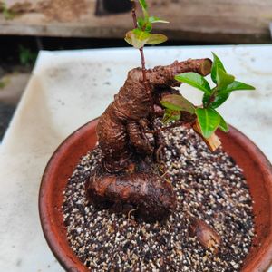 藤原定家に起因すると聞くが初雪カズラもこの変種いずれ手に余る様になるかも 今回は縮緬カズラになるかのテスト太い本体の幹は先端で根が出た為元は枯れこみ僅かに残る枝の葉がどのくらい小さくなるかな〜