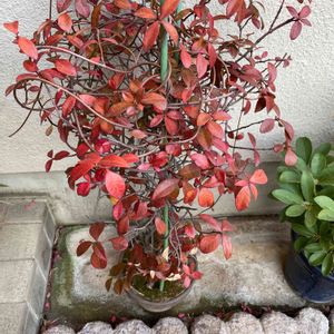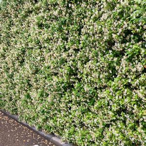 京阪木幡駅前のコンビニ。ここは植木がよく手入れされています。ツツジ、サツキ、ノムラモミジなどなど。 隣との境界の壁を木で覆ってもいます。 何でしょうか?