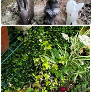 かくれんぼ no.3 三匹の兎を見つけて! 真ん中の兎は直ぐ見つかりますネ そこから下に銅の兎が土の中に 白い兎は、、、 銅の兎から斜め右上に定家葛とオルレアの草の根本に白い兎 ※浦和の鎮守様 調神社の守り神は兎
