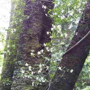 春に可愛らしい花を咲かせたウワミズザクラ🌿実がたくさんついていました❤️ ウワミズザクラの木にぶら下がるようにテイカカズラの白い花🤍🤍🌿