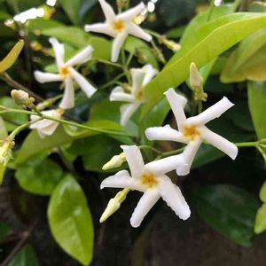 沖縄の親戚の家に咲いてたけど、何の花かな。柑橘系の花に似てるけど🌼🍊