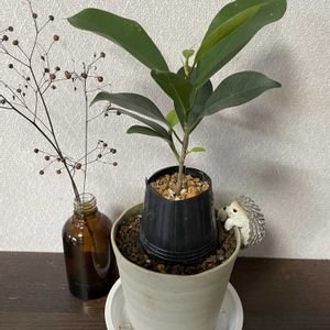 土に植えて一ヶ月経過したガジュマルの挿し木です。葉っぱの数も増えて元気いっぱい育っています。