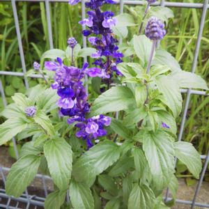 昨日は33℃💦 今日も暑いぞ〜🤣 暑さに強いといえば… 【サルビア】 PW 『スーパーサルビアロックンロール ブルーティアーズ』 植え付け1ヶ月ぐらいで、株は高さ30cmぐらいになり 咲き始めました😍 今のところ鉢植えです🪴 そうそう! この少し淡いブルーが素敵なのです💕 もう少し淡くなるかも?? ブルーティアーズは2021年デビューのお色です! (ジュリマリの楽曲から名付けたそうです) 昨年GSで早速育てている方がいて、ブルーのお色に一目惚れ😍 今年育てられて幸せです〜💕 他のお色もロックのアーチスト名が付いていますね😆🎸✨ 『ディープパープル』 『ピンクスパイダー』 お花にロックとは面白いですね🥰 ー特性ー(HPより) 耐寒性多年草 草丈 70〜100cm 株幅 70〜100cm 鉢植えの場合30cm前後の鉢がおすすめ 育てる環境 一日中陽が当たるところ or午前中によく陽が当たり午後は木陰のような日陰ななるところ 水捌けの良いところ 水やり 表面が乾いてから、鉢底から水が流れ出るまでたっぷりとあげる。 夏の水枯れに注意。 肥料 元肥と花期は緩効性の置き肥を1ヶ月ごと。 液肥 1000〜2000倍を1〜2週間に1〜2回与える。 花後の処理 10〜20cm下の枝を切り落とすと脇芽がでる。 切り戻し 形が乱れたり大きくなり過ぎた場合形を整える程度に切り戻す。 9月以降は大きな切り戻し控える。 耐寒性 -5℃ 冬越し 冬の霜にあたり根が凍ると枯死することがある。地植えしたスーパーサルビアは土の中で凍結してない場所に向けて根を張る生命力がある。葉をそのまま残して冬越しさせる。越冬すると大きな株に成長する。鉢植えを地植えにする場合は秋までにすると良い。 鉢植えで冬越しする場合は二重鉢にし、軒下など暖かい場所に移動して霜除けする。 鉢植えの場合耐えられる最低温度が高くなる。3月ごろ芽吹くので日当たりへ移動する。4月までに植え替えをする。 耐寒性ゾーン 9a〜 特性 スーパーサルビアは、近年の日本の猛暑にも耐え、次々と花が咲く。 1苗でボリュームがあり、1株で1mの株幅に成長する。 剪定をしなくてもよく枝分かれしてキレイな草姿にまとまり、セルフクリーニング(花が咲き終わったら自然に落ちる)で、お手入れも簡単! 晩春から秋まで長い間ボリューム満点のたくさんの花を咲かせる。 開花前は蕾が垂れているが、開花をすると立ちあがる。 (一瞬水切れ??と、焦ります🤣) ー作業記録ー 昨日 『ウツボカズラ』植え替え、外に出しました。 『メギ』2種植え付け 『エキナセア』2種植え付け 『ガザニア』渋色植え付け 『ペンタス』白植え付け 一昨日 『白ゴーヤ』3苗植えました。 『バタフライピー』植えました。 『群舞』『群星』剪定