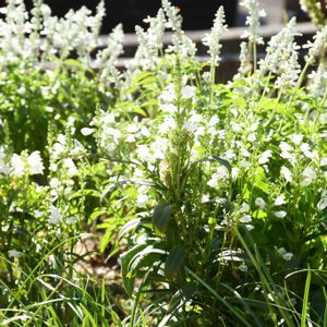 ホワイト花壇に咲く、ハナトラノオ・ホワイトとサルビア・サリーファンです🤍 どちらも宿根草で、この暑い夏でも元気に咲いています😃