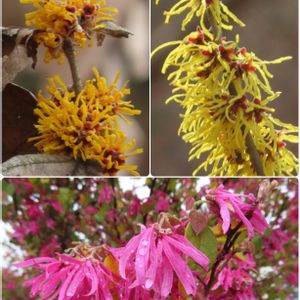 おはようございます😊 "今日のお花 マンサク" 左上:シナマンサク 右上:マンサク 下:ベニバナトキワマンサク 撮影日 2022.3.初旬