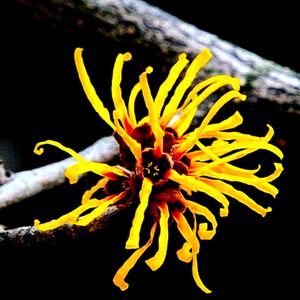 このお花が待っていてくれました 同じところで、、 まぁホントに見つけた時の嬉しいこと♡ シナマンサクはマンサクより一足早く咲きます 枯れた葉を残したまま、、② マンサクより花は少し大きいようです 『まず咲く』から『マンサク』と音が変化し、花が沢山つく様子から豊年満作のマンサクと、、、 シナマンサクの黒い瞳が大好きです