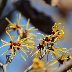 No.287 シナマンサク 和名:支那満作 マンサク科マンサク属 その3 支那満作は中国原産のマンサクです🎵 左側に葉が写っているのが、わかりますか⁉️ シナマンサクは、花が咲くまで、葉が落ちずに残ります🎵 NHKの連続テレビ小説に「まんさくの花」があり、ヒロインは中村明美です🎵 この舞台は秋田県横手市で、これを記念して作られたのが、「まんさくの花(日の丸醸造)」🍶で、私の好きな日本酒の一つです💕 金縷梅やシャボン玉吹く兄弟(あにおとと) 森本芳枝 撮影日2019.2.8