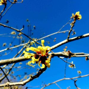 おはようございます(^O^)/ 今朝はすごい霧でしたね〜💦 写真は、1/14に訪れた智光山公園の都市緑化植物園シナマンサクです 青空に黄色の花びらが映えますね〜😊クルクルしているところがキュートです💕