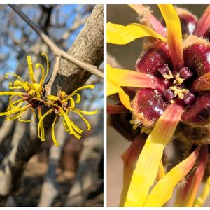 寒くても季節は確実に春に向かっています。 シナマンサクがほころび始めていました。 2️⃣シュルシュル伸びた花弁が落ちた後、萼片が陶器でできたようなブローチに見えるのは私だけ❓