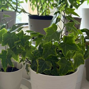 アイビーのムーンライト✨ 葉が大きめでクルクルしててかわいい! 1日だけ直射日光がんがん当たるところ置いてたら葉焼けしてしまった… ごめんよ… 鉢も来年は一回り大きくするからね😭🙏