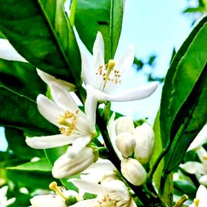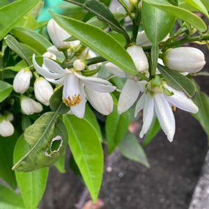 今日のお花 🍀ミカン ミカン科 ミカン属 春 白い花と甘〜い香り! 小さな白いつぼみ! 秋 美味しそうに実った蜜柑! キンカンも色づいてきました!