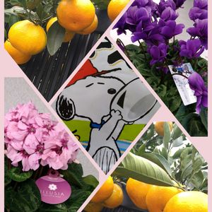 おはようございます😊 買って来てもらったカップ麺に スヌちゃんいました🐕️🤤 ご近所さんのミカンと🍊出先で 見つけた素敵なシクラメンです💜🩷💮