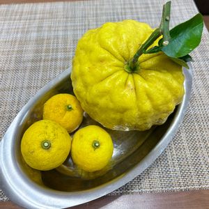 娘の嫁ぎ先の庭からの収穫 カーブチ(皮が厚い) 甘酸っぱいくて果汁がいっぱいです 🍊