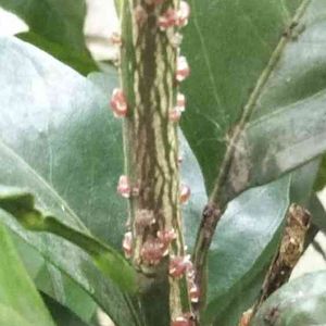 ミカンの木💦 植えて5年位、経ちますが花も見たことありません😭 今年は葉っぱを守るためイモムシも割り箸で捕りました💪 今朝、良く見たら…幹に、へばりついているのを発見☝️これは、なんですか? どうしたら良いですか? いつか、我が家のミカンを食べてみたーい💪💪