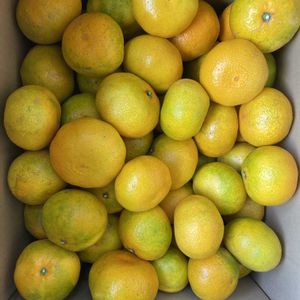 今年のおみかん🍊はとっても不味いです♪色付きの時期にずっと雨だし、成りようが少なく大玉です⤵︎ 生産者のおじさん曰く、我慢せいッ‼️ おみかん嫌いの私は一生我慢出来ます🤣🤣 💃
