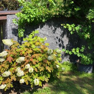 カシワバアジサイも色が変わってきて、紫陽花たちも終盤ですね〜 我が家は一重の"スノークイーン" 手前のリーフ🌿 斑入り野葡萄はハンギングにどさっと入れて垂らしてます♩ まだ定位置が決まってないのでアッチコッチさせてます😂