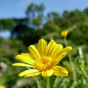 おはようございます 先日の病院帰りにフェンスからかわいいお花が顔を出していました ユリオプスデイジー🌼 はれていたのでさらに明るく輝いて見えました