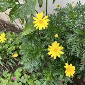 ユリオプスデイジーが 咲き始めました♪ 濃いグリーンの葉に、鮮やかな黄色の花が目立ちます🌼🍃 今日は、寒い一日でした 雨風がすごかった☔️ 花壇のビオラさん達も、ぐったりしてます😅 寒さのせい?で、我が家の冬支度も遅れてます😅 ばね指と腱鞘炎のおかげで、やりたくないのだけど…
