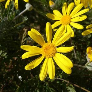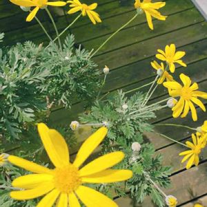 ユリオプスデイジー 今日は朝から 家族みんなで庭仕事💦 主に義母の庭の 雑草抜き&芝刈り🌱🌱🌱 風の気持ち良いお天気で ☀︎☀︎☀︎ しかし 暑いくらいょ〜(☼Д☼)