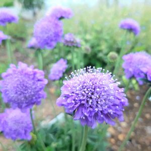 このところ、連日午後は土砂降りの雨☔ 先日までの暑さを乗り越えて咲き続けているスカビオサ、蒸れないといいけれど💧