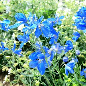 湿度は高めなものの、暑すぎず過ごしやすい朝です☁️ 春の寄せ植え解体株のデルフィニウム、こちらもモリモリ成長して再び開花中🌿 この青、大好きです💙