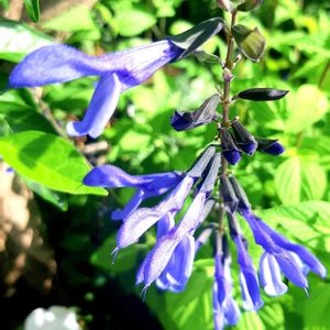 晴れて日射しがジリジリ☀️ カッコいい青が涼しげなスーパーサルビアロックンロール(ブルーティアーズ)🌿 口を大きく開けて歌っているような花姿です🎼