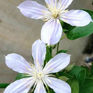 すっかり雨は上がって、青空に☀️ クレマチス(ホワイトプリンスチャールズ)がまた花を付けだしました🌿 一番花は6弁がほとんどだったのが、今回は今のところ全て4弁です💠