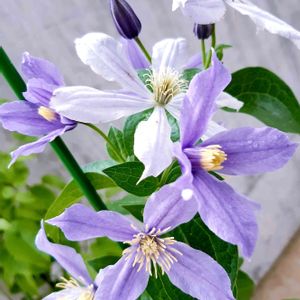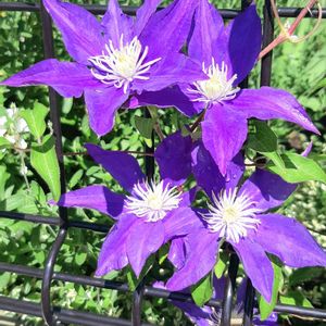 今日もクレマチス💠 剪定が弱すぎたのか2番花があまり咲かなかったHFヤング。バッサリ切ったら勢いよく枝が伸びて、蕾いっぱい🌿3番花が咲きだしました💙