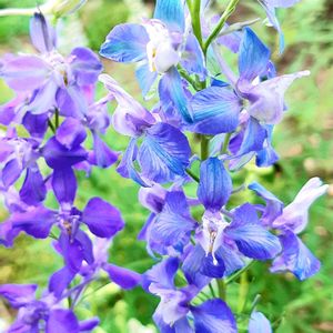 紫のチドリソウの種から、青が強めな株が一本だけ出てきました(左が元々の花色)💠 グラデーションがかってちょっと神秘的な色合い💙
