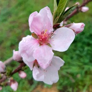 お昼から再び雨がしとしと☔ 数日前に咲きだした桃(川中島白桃)の花です🌸 去年は遅霜と夏の長雨でほとんど実らなかったっけ。 今年は天候不良にならないことを祈るばかりです🍑