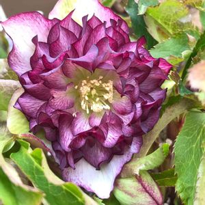 クリスマスローズ チェリッシュシリーズ ワインレッドバイカラーダブル💗 昨日のpicの自家交配株の親株さんです😊 うちに来て5年目ですが、 今年もたくさん咲いてくれそうです✨