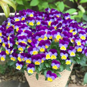こんにちは😊 何度か登場の プレミアムビオラ ディージェイ ブルーウィズパープルウィング💜 他のビオラ達が徒長しても この子は切り戻し無しでOK🙆♀️ 1株で広がってモリモリです😆 いつまで頑張ってくれるかな〜(*´˘`*)♡