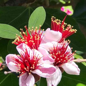 こんにちは😊 フェイジョアのお花が咲いていました💕 不思議な形だけど、なかなかキレイかも✨✨ 以前住んでいた家の庭にあって、 誰が植えたのか?謎の木扱いでしたが、 数年前にお名前が判明しました😅 今の庭では日当たりの良い門横で 毎年お花を咲かせてくれます🎶 実もできますが、ほぼ食べた事がありません💦 下にゴロゴロ落ちたまま〜😅 鳥さんも興味ないみたい🐧