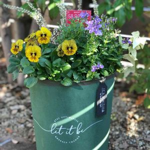 こんにちは😊 11月初めに作った寄せ植えの フリズルシズル・イエローブルースワール さんがたくさん咲いてきました💜 やっぱりフリフリのお花はゴージャス感が ありますね〜✨