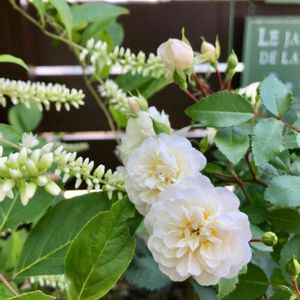 おはようございます☀ 昨秋にお迎えしたミニバラが 咲き出しました😃❣️ 株も大きくなって、蕾もたくさんで これから楽しみです💕 トゲが少なめなので、扱いやすいです 😊 後ろのコバノズイナは3年目ですが 昨年は咲かなかったので嬉しい〜(•ө•)♡