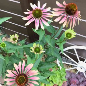 こんにちは😊 お日様がそろそろ恋しい今日この頃です☀️ 暑いのは嫌だけど、2日雨で1日晴れぐらいのパターンでお願いしたいものです😅 エキナセアもだいぶ咲き揃ってきました💗 さっきコガネムシが真ん中のツンツンした所に乗っかってたので、 指パッチンで飛んで行ってもらいました💦 🚨👮♀️🚔
