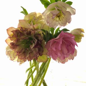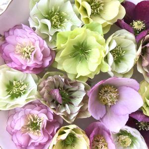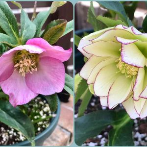 おはようございます☀ クリローさんも続々と咲き出しました💓 3年目のピンクのシングルと クリーム色に紫ピコティのダブルです🤗 晴れたので、花粉が怖いです💦🤧