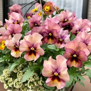 こんにちは☀️ 寄せ植えのビオラさん、今が一番 綺麗な時かもしれません🌸 暖かくなると、徒長が始まりそう💦