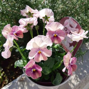起きたら久々の雨☔ 午前中にはあがりました😊 庭のビオラビビアンティーク、ラベンダー色からピンク寄りに変わってきましたが、可愛く咲いています💠