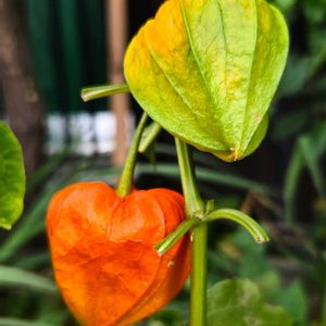 🌺🌻🪴💐🌹🌻🌺 🍀💚🧡ほおずき・鬼灯(ホオズキ)🧡💚🍀 ホウズキが色付きました、オレン ジとグリーンのコントラストが綺 麗です 💐初夏から夏にかけて見頃を迎える ホオズキの花言葉は(自然美)(心の 平安) (偽り)(ごまかし)(私を誘っ て)(私を誘惑して)などです 💐ホオズキは萼(がく)の中には小い さな実があり、中はほぼ空洞です 💐ホオズキの草丈は60~80cmと小 さく育ち、ホオズキのイメージを 象徴するオレンジ色の袋のような ものは花が咲いたあとにできます 💐花の咲いた後の萼が実を包むよう にふくらみ徐々に熟して緑からオ レンジ色に変化することでつくら れます 💐和名を鬼灯、鬼燈、酸漿(ホオズ キ) 、別名は酸漿(サンショウ) 輝 血(カガチ) 赤輝血(アカカガチ)奴 加豆支(ヌカズキ)です 🌺🌻🪴💐🌹🌻🌺