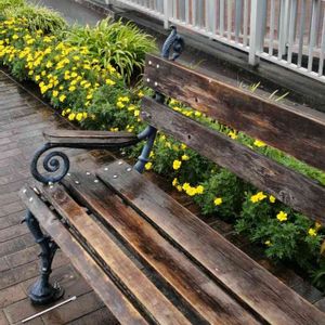 |ョ'ω'〃)おはよぉございます♪ 花友の皆様♥台風🌀は大丈夫だったでしょうか? 遠く離れた関東でもゲリラ豪雨☔⚡が突然襲う程の強い勢力でビックリ😱💦 被害が最小限度でありますように!🙏💕 さて、こちらは先日訪れた🌊海沿いのベンチ☔に濡れても風情がありました❣🏷火曜ベンチ 黄色い💛お花が可愛く咲いていました💖 よく見掛けるお花のはずなのに?なんだっけ🙄💞 →麦わらの帽子の君が揺れるマリーゴールド💛に似てる〜🎶 でした🙌 花友バンザイ🙌 皆様♥今日も素敵な火曜日を🤗