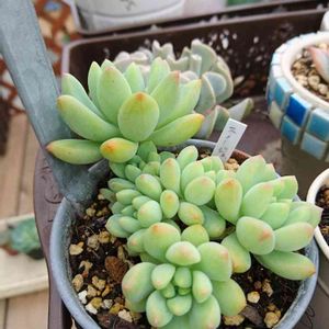 おはようございます☀😃‼ 23.3℃ 曇☁/雨☔ ティテュバンス錦(杏子美人) グラプトべリア属 この子は2号ちゃん とても優しいカラー 最近気がついたけど、斑入りって、直射日光に弱く、徒長が早い?! グラプトベリアなので気にもしていなかったけど、ティテュバンス錦においては、葉と葉が詰まっているのが正常な型のようだが、背が伸びたのしか届いたことがないような? で、若干遮光の高いところに置いていると、更に伸びた!? この辺の管理が難しい。 既に植えているものはまだ良いとして、根だし待ちは、日照が足りずに伸びそうよ(いや、確実に伸びた) 先週見た天気予報がかわって、どんより空が続いているため、このままでは、色んな種が伸びそうなので、昨晩は夜中3時まで部屋のライトをマックスにして光を当てた。 ほぼ意味はないけれど、LEDライトなので少しは… 今日は昼間に少し☀が出るはず 太陽☀ウエルカム!!