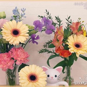 同じお花の投稿が続きますが… 昨日の入れ替え完了後の写真♪ 3輪の大輪ガーベラがきれいです☺︎