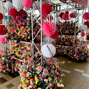 フラワーバレンタイン❤🍫🎁 秋田駅前のポポロードに お花のアーチが出来ていました(*ˊᗜˋノノ*✭パチパチ 引き目で撮ったりアップで撮ったり🎶🎶🎶 可愛いお花に気分は少女の様に💕 気分だけはネ(;˙³˙)〜♪