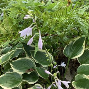 🍀ギボウシ🍀 今咲いているのは8/17にも投稿した ①②タマノカンザシだけです。でも、ほんの少しでもうすぐ終わり。 ③グアカモーレ ④ゴールデンティアラ ⑤スジギボウシ 🏷今日のお花 なので まだ葉っぱがきれいな子達を投稿しますね。🤗🎶🎵
