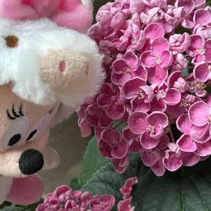 紫陽花 ポップコーン💕 オイオイ、 ミニーちゃん♡ 牛🐄さんにクンクンさせてる、ね🤣 食べられないんです‼️ 柴犬小夏さんの 🏷牛の日🐮参加します。